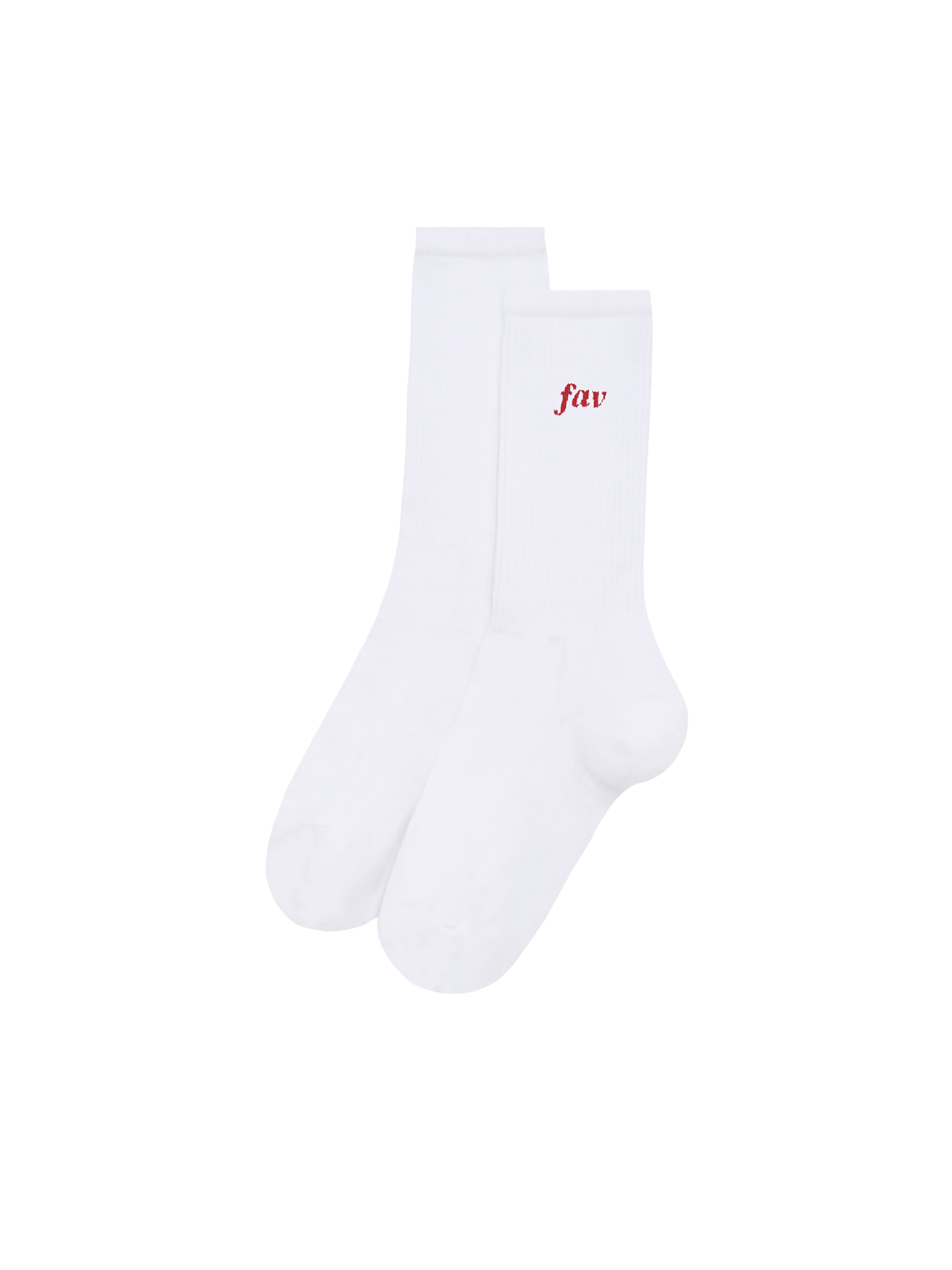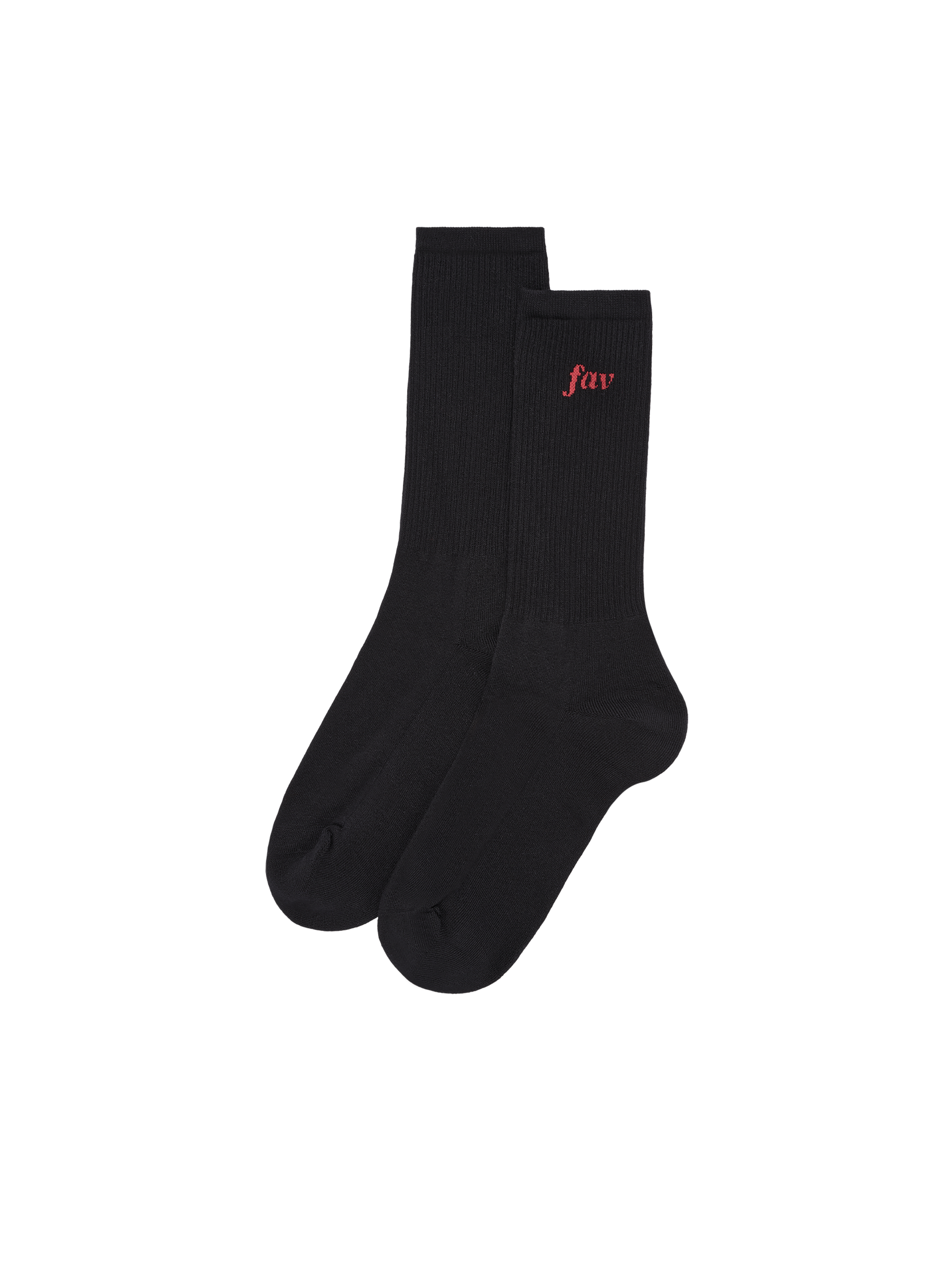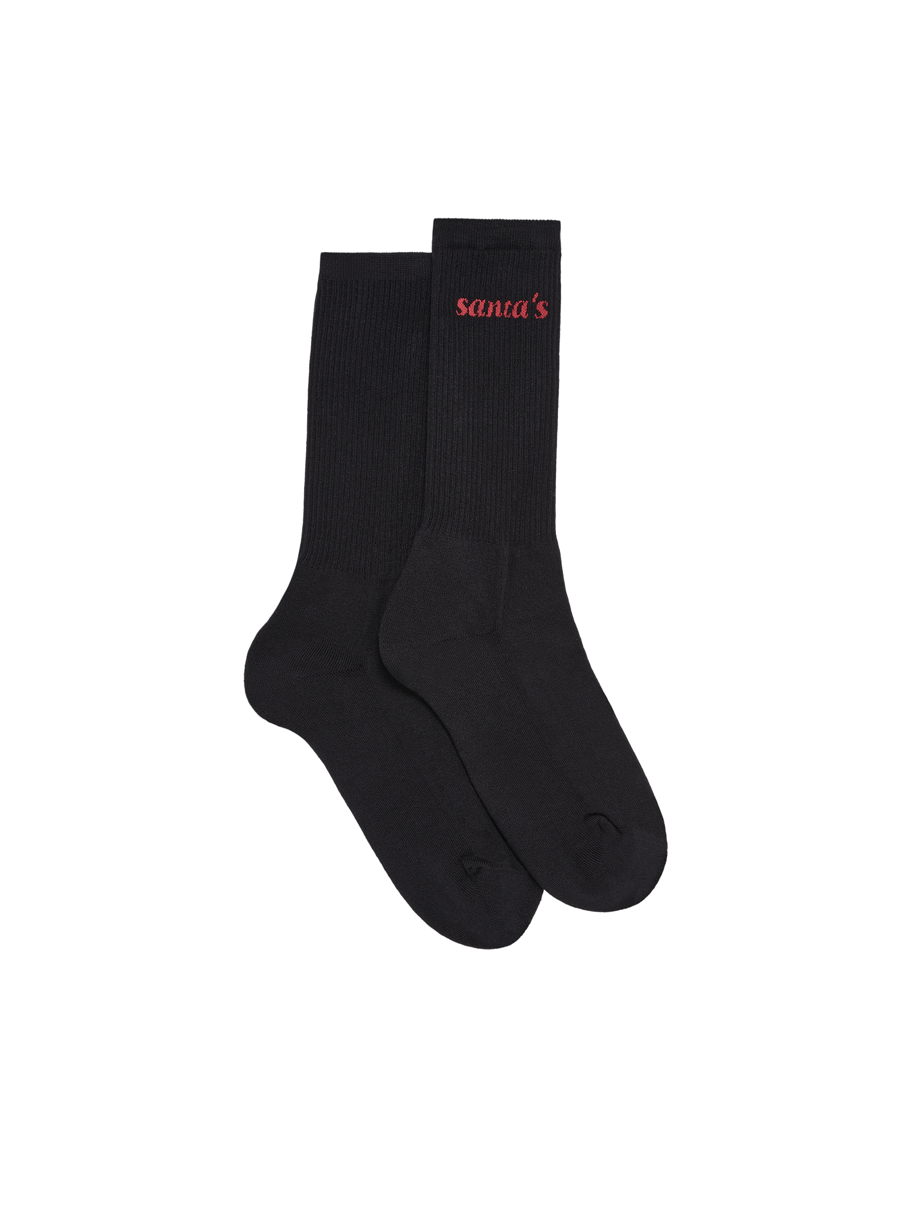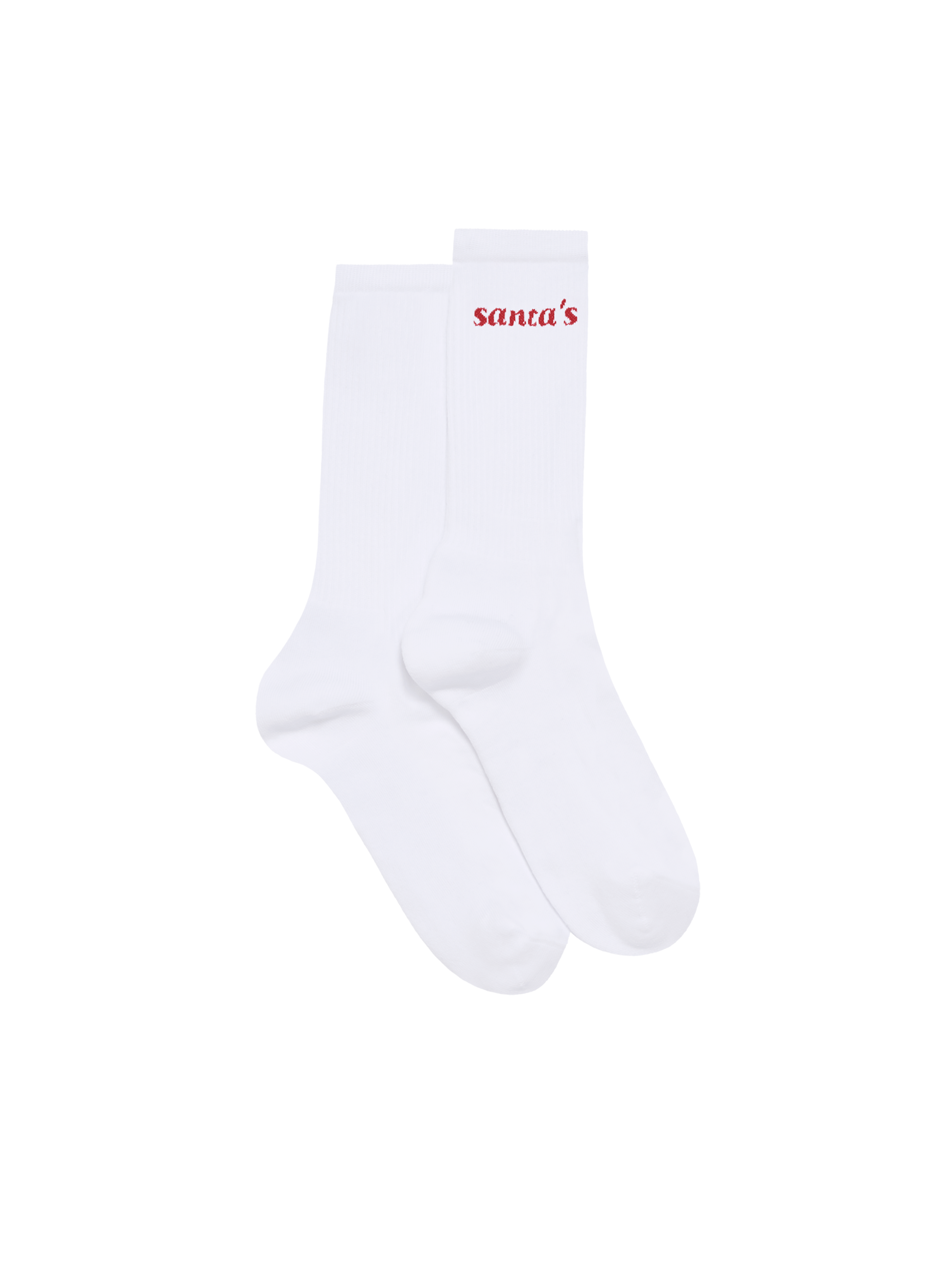 Socken in schwarz & weiß mit "santa's fav" Spruch.