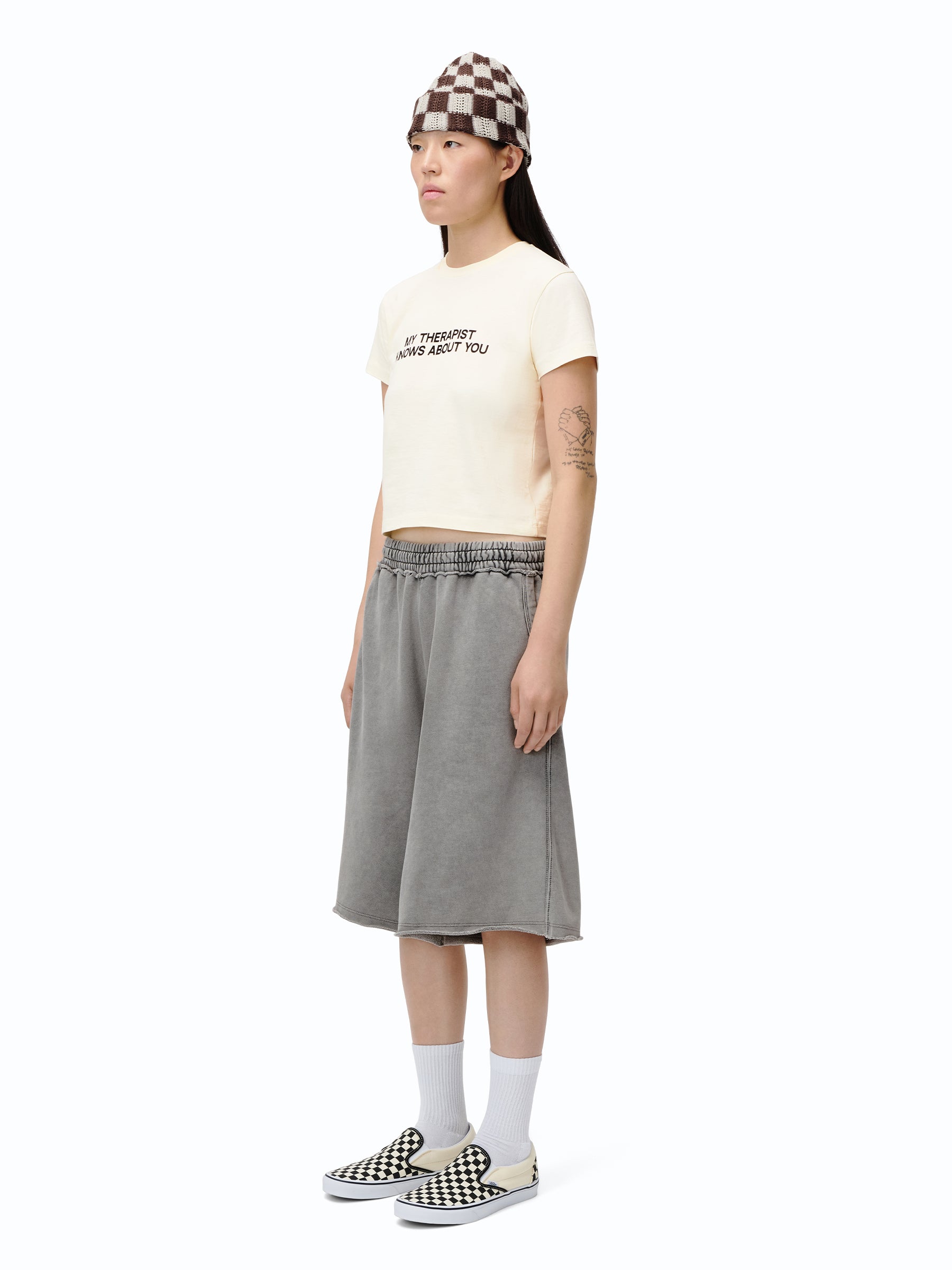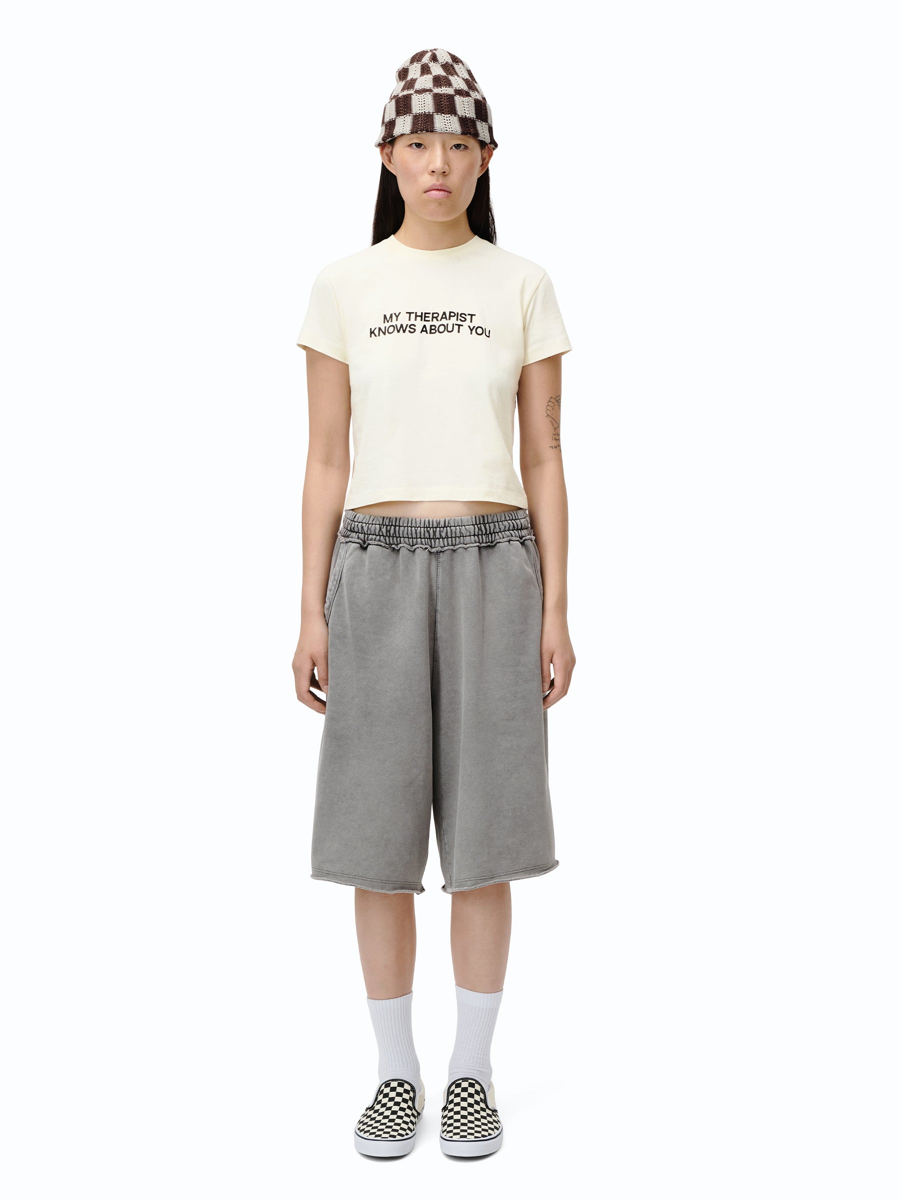 90s Cropped T-Shirt mit „MY THERAPIST KNOWS ABOUT YOU“-Print.